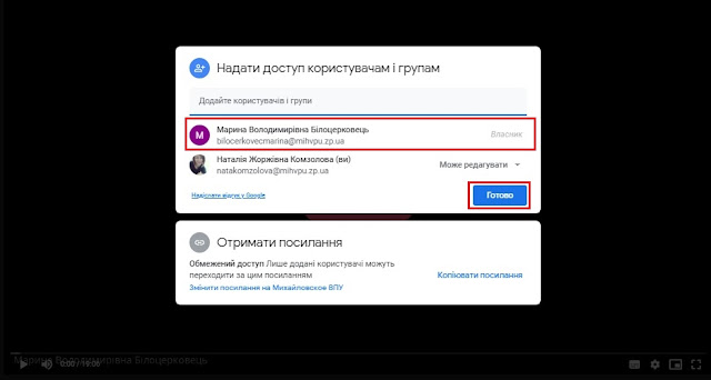 6. Власника запису уроку змінено! Тепер можна натискати "Готово"